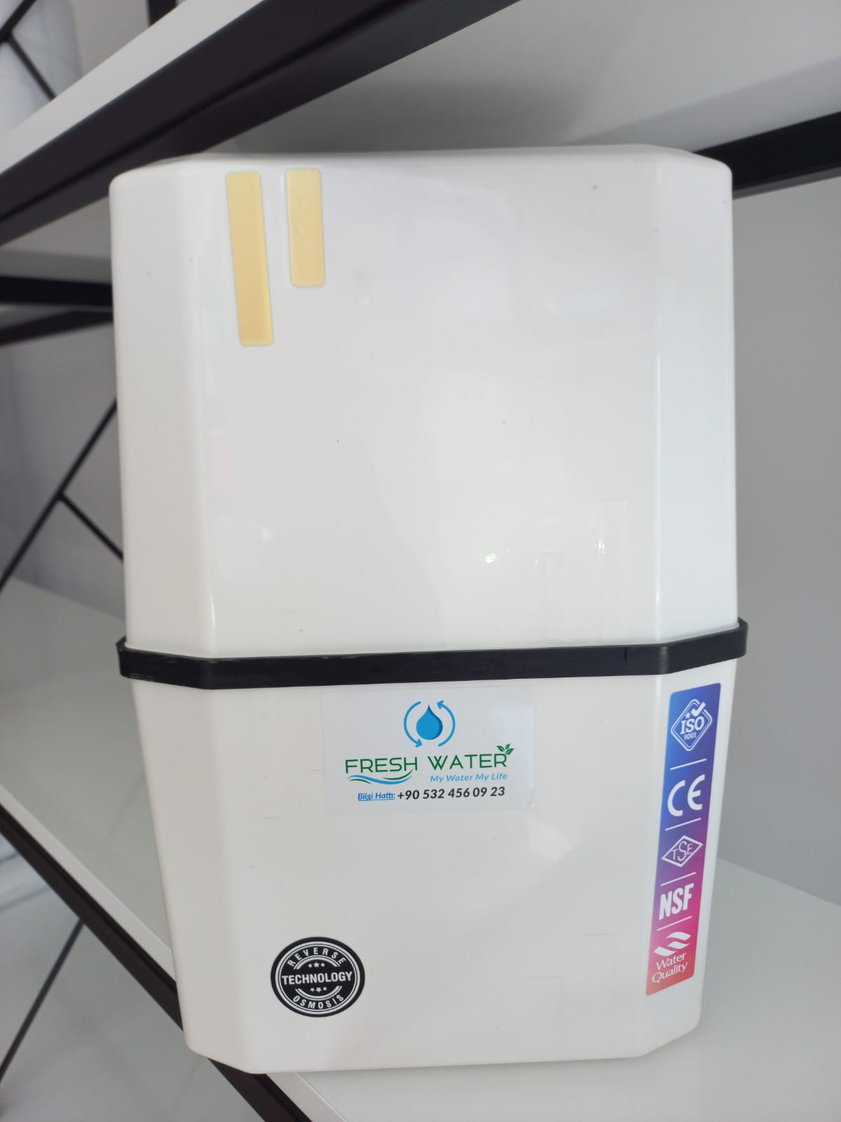 Fresh Water Beyaz Siyah Kuşaklı 14 Aşamalı 8 LT Çelik Tanklı 5 Filtreli Yüksek Mineralli Pompasız Su Arıtma Cihazı